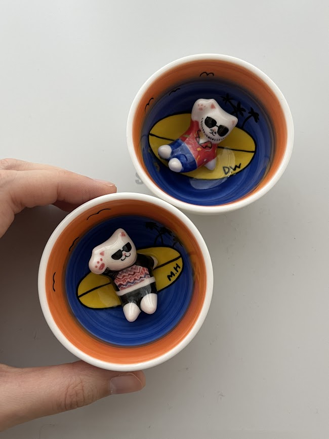 그래서 이번에 이 서핑하는 고양이잔을 커스텀 제작을 하게 되었는데, 실제로 받아보니까 정말 너무 귀여운거에요..!!