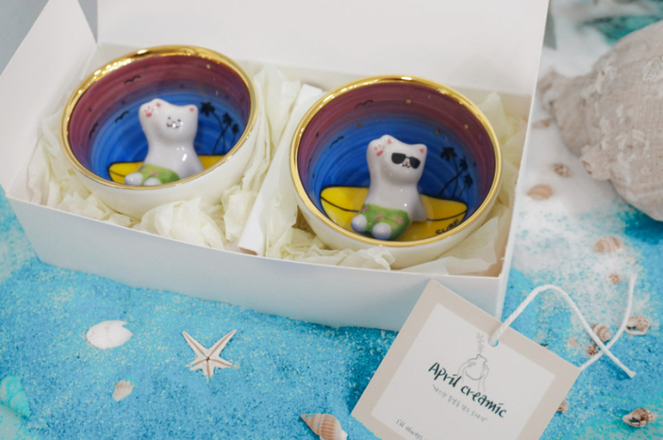 오늘 저희 와미부부가 가장 추천 드리는 선물이 바로 이 '서핑하는 고양이잔' 이에요!